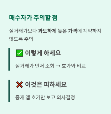 그래서 매수자는 실거래가보다 과도하게 높은 가격에 계약하지 않도록 주의해야 합니다.