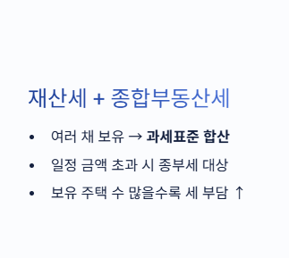 주택을 여러 채 보유하면 과세표준 합산으로 세 부담이 커질 수 있습니다. 특히 일정 금액 이상이면 종합부동산세 대상이 됩니다.