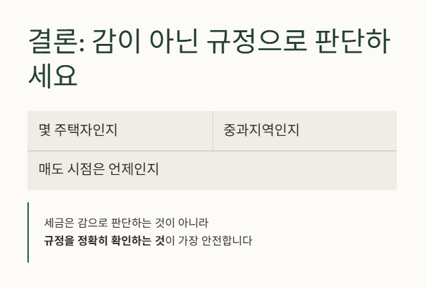 다주택자 양도소득세 중과지역 여부는 단순 정보가 아니라 세금 부담을 좌우하는 핵심 요소입니다.