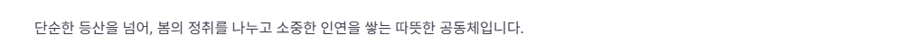 등산 동호회인 벚꽃산악회에 참여하는 것은 단순히 운동을 하는 것 이상의 가치를 지닙니다. 우리는 산을 오르며 다양한 분야의 사람들과 대화를 나눕니다. 사무실 책상 앞에서는 절대 만날 수 없는 다양한 연령대와 직종의 사람들과 소통하며 세상을 보는 시야를 넓힐 수 있습니다.