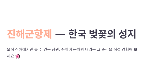 제64회 진해군항제 (3월 27일 ~ 4월 5일): 대한민국 최대 규모의 벚꽃 축제입니다. 해군사관학교 개방 행사와 함께 어우러진 벚꽃은 오직 진해에서만 볼 수 있는 장관입니다.
