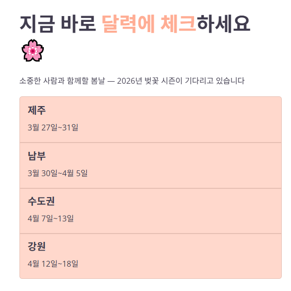 2026 벚꽃 만개시기 총정리: 지역별 개화 일정이 궁금하신가요?