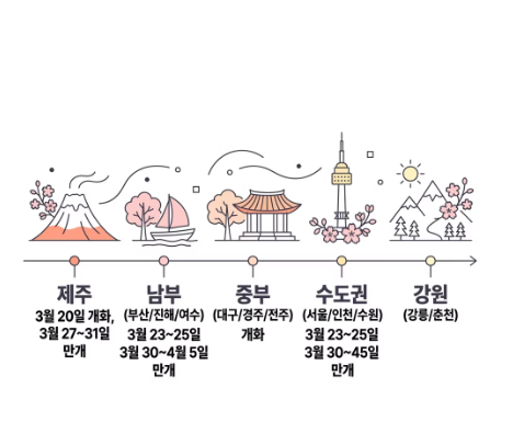1. 2026 전국 벚꽃 개화 및 만개 타임라인: 남쪽에서 시작되는 봄의 전령