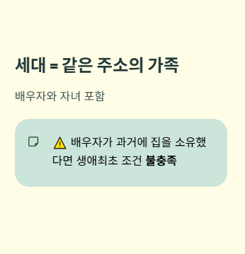 여기서 중요한 점은 본인뿐 아니라 세대 전체가 무주택이어야 한다는 것입니다.