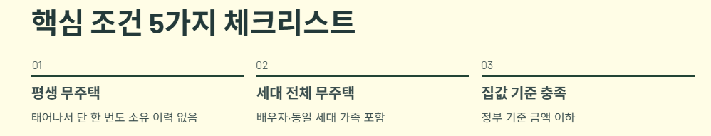 집 가격 기준, 세대 무주택 여부, 의무 조건을 먼저 확인해야 합니다.