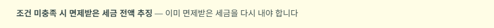 ✔ 조건을 어기면 세금을 다시 낼 수 있음
