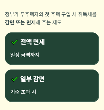 집을 처음 사는 사람에게 가장 부담이 되는 것 중 하나가 취득세입니다. 집값만 준비하면 끝이 아니라, 집을 샀다는 이유로 내야 하는 세금이 따로 있습니다. 그래서 정부는 무주택자가 처음으로 집을 살 때 부담을 줄여주기 위해 생애최초 주택 구입 시 취득세를 감면 또는 면제해 주는 제도를 운영하고 있습니다.