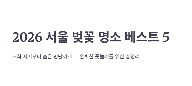 2026 서울 벚꽃 명소 베스트 5: 개화 시기부터 숨은 명당까지 총정리