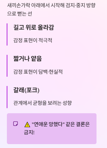 - 손가락 마디가 도드라짐: 계획·규칙을 중시한다고 보는 해석이 흔함