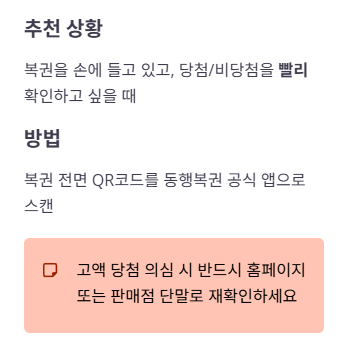 추천 상황: 복권을 손에 들고 있고 “일단 당첨/비당첨만 빨리” 확인하고 싶을 때