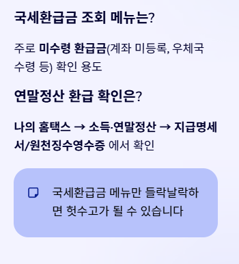 3) “국세청 환급금 조회”는 따로 있다: 미수령 환급금(계좌 미등록 등) 확인용