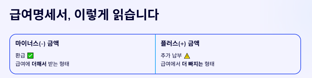 • 마이너스(-): 환급(급여에 더해 받는 형태)