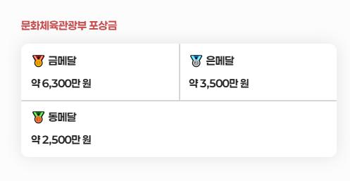 ✔ 동메달 정부 포상금 : 약 2,500만 원