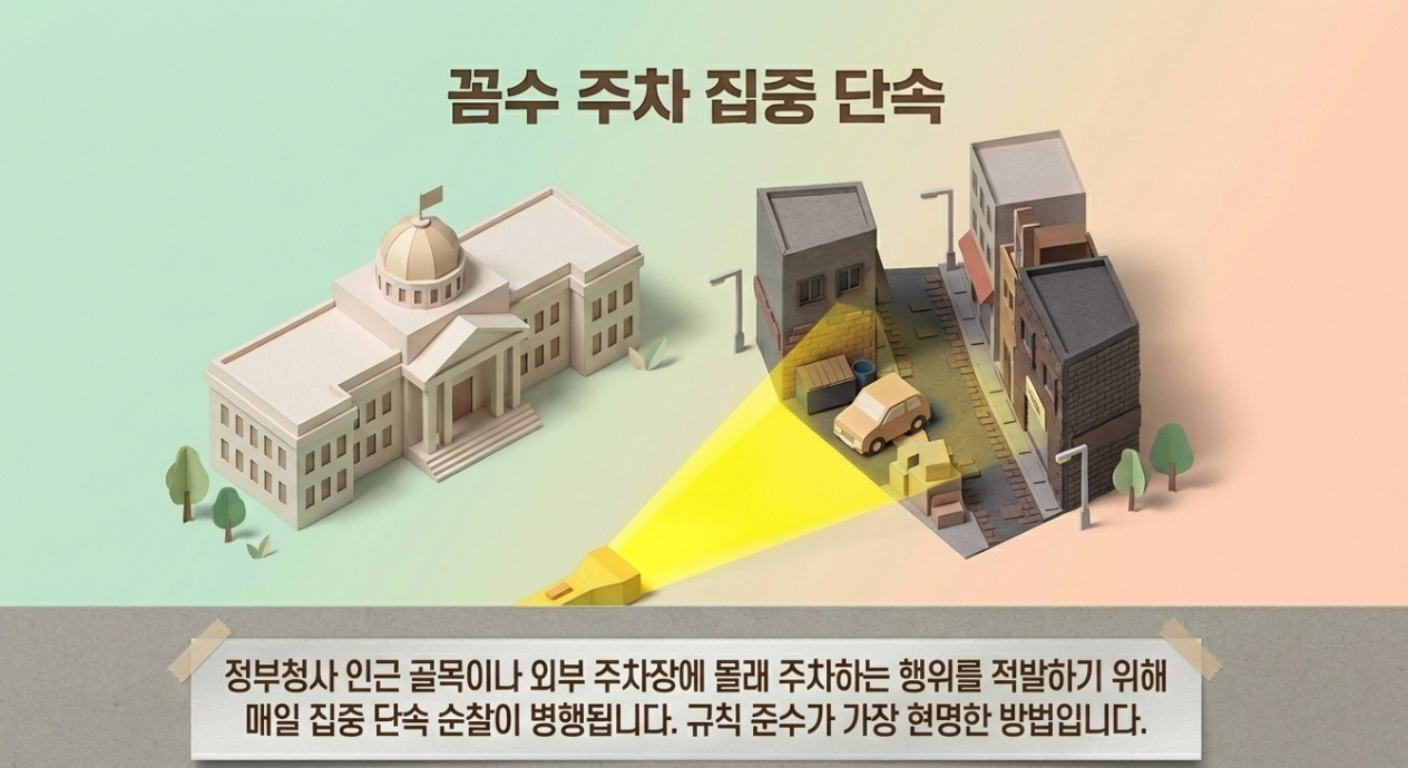 특히 정부는 청사 인근 골목이나 외부 주차장에 몰래 차를 세우는 꼼수를 막기 위해 일일 단속도 병행할 방침이라고 하니, 규칙을 지키는 것이 가장 현명합니다.