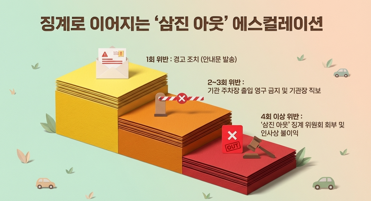 • 2~3회 위반: 해당 기관 주차장 출입이 아예 금지되며, 기관장에게 보고됩니다.
