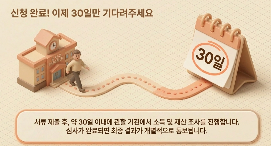 가장 권장하는 방법은 거주지 읍·면·동 행정복지센터(주민센터)를 방문하는 것입니다. 담당 공무원과 직접 상담하며 본인에게 필요한 추가 서류나 놓치기 쉬운 혜택을 안내받을 수 있기 때문입니다.