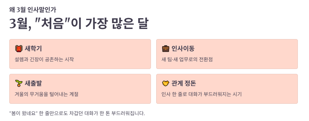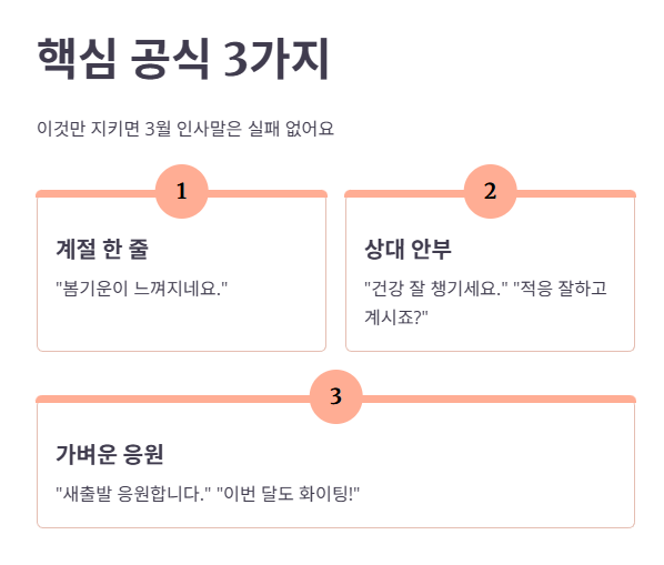 1. 3월 인사말의 핵심: “기분 좋게 + 부담 없이”