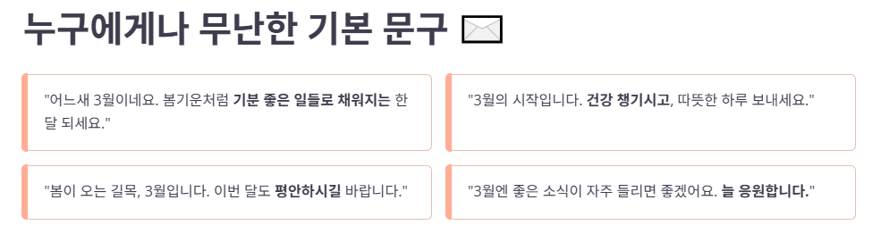 2. 상황별 3월 인사말 문구 모음 (복붙 OK)